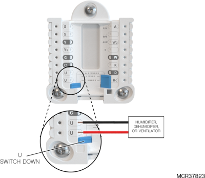 Set the U Slider Tab to the position shown for IAQ wiring diagrams on Using U Terminals.