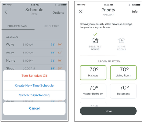 Flexible scheduling: You can choose to use location-based temperature control (geofence/Auto Away technology), time-based scheduling, or use a combination of both to make sure your home is always comfortable.
