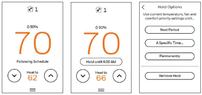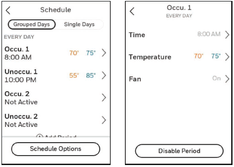 Touch Temperature to set the Heat and Cool setpoints for that period.