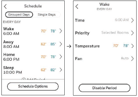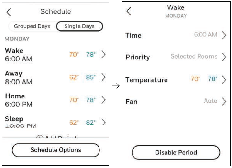 Touch the period of the day you wish to edit (Wake, Away, Home, or Sleep). Scroll down to see additional days).