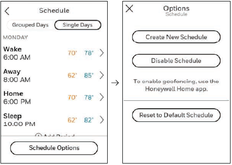 Touch Create New Schedule. The thermostat will then walk you through the schedule setup.