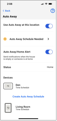 To utilize Auto-Away (Geofencing), set the schedule through the app.